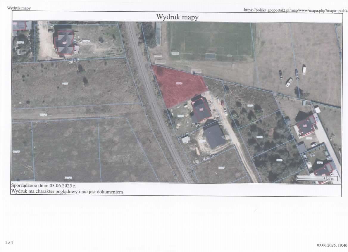 Dojazd droga gruntową. Udziały w działce gruntu 37/50 ( 1/10 części) oraz 37/26 ( 2/64 części).